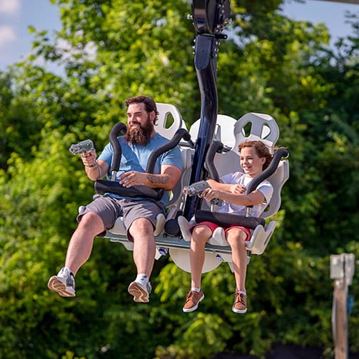 Enjoy beautiful views of the smokies while zipping over 2,600′ through the tree canopy side-by-side with family and friends.